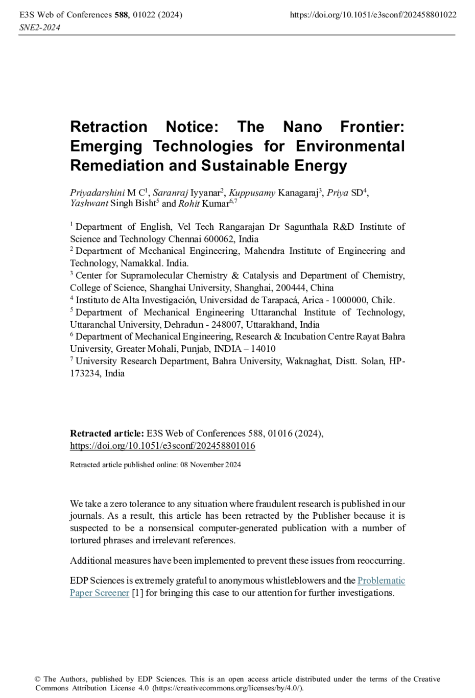 EDP Sciences is extremely grateful to anonymous whistleblowers and the Problematic Paper Screener for bringing this case to our attention for further investigations.