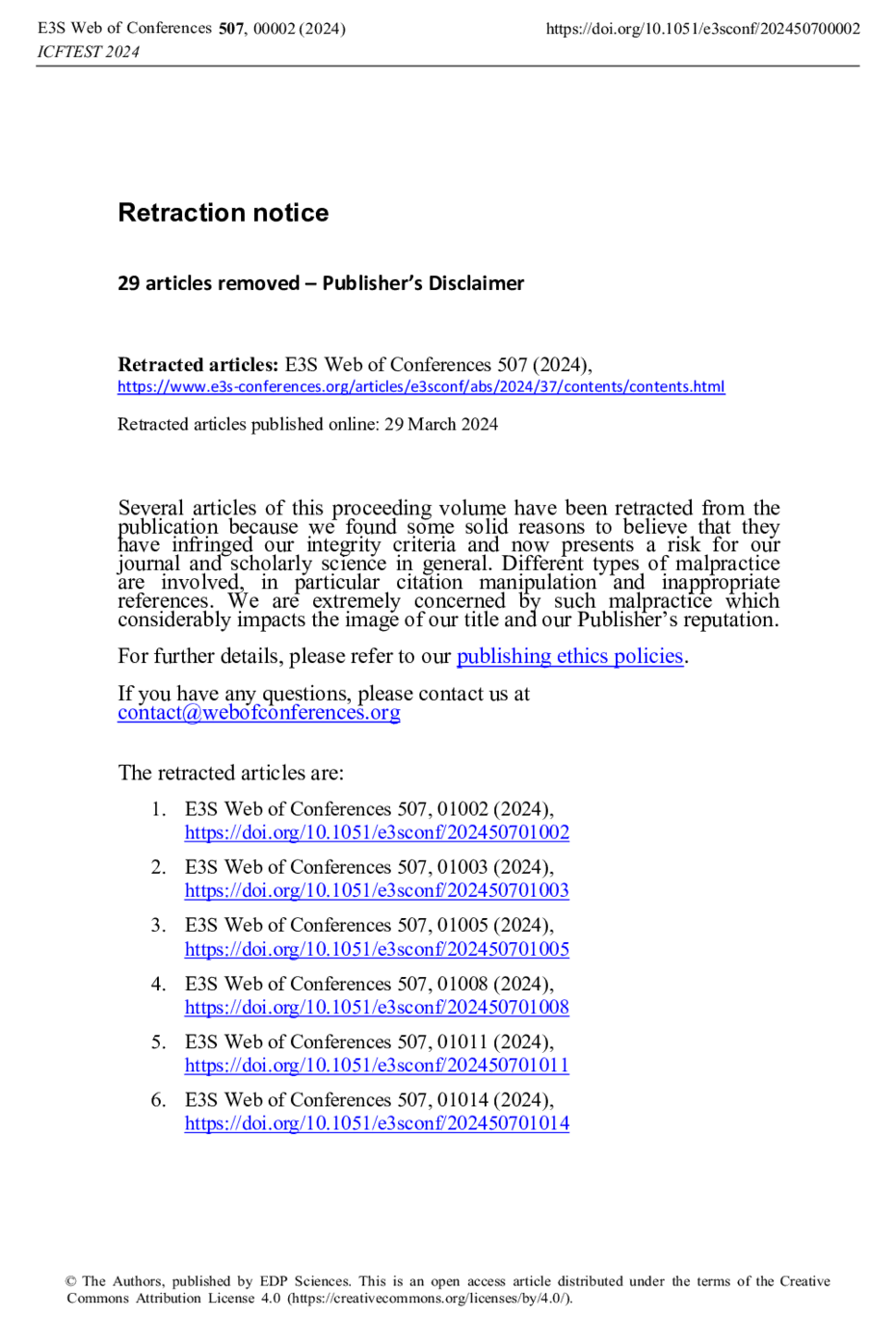 Retraction notice: 29 articles removed – Publisher’s Disclaimer